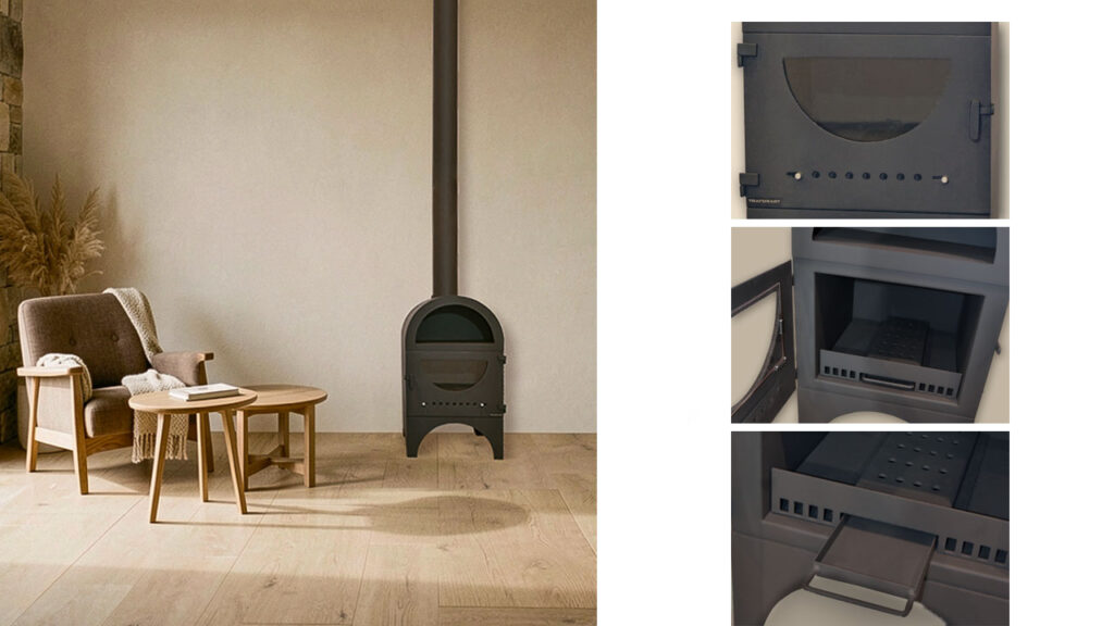 Poêle élégant qui allie chaleur et fonctionnalité. Sa petite zone de réchauffe permet de chauffer l’ambiance tout en gardant les aliments chauds, offrant confort et praticité dans un design soigné qui s’intègre avec style dans tous les espaces.